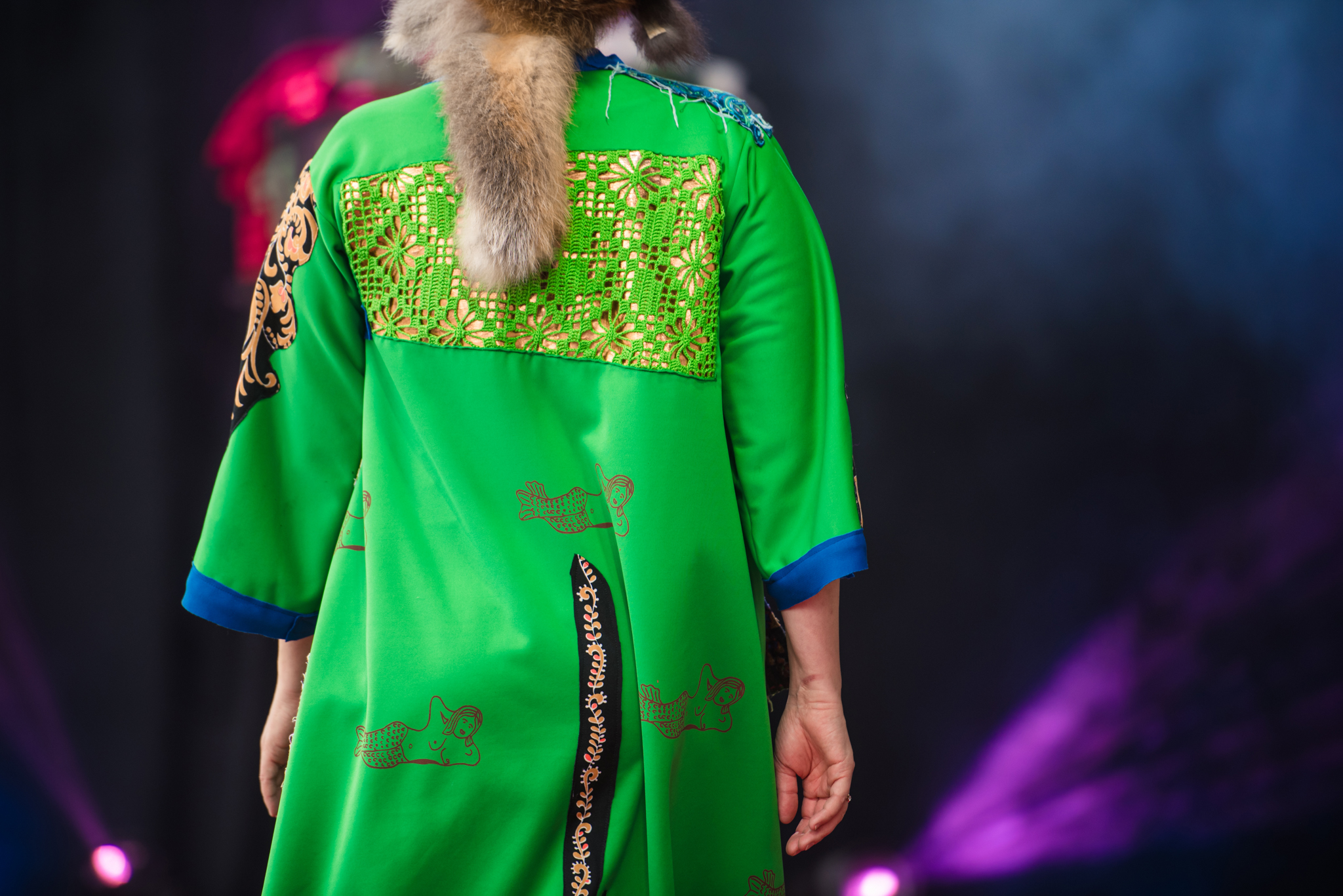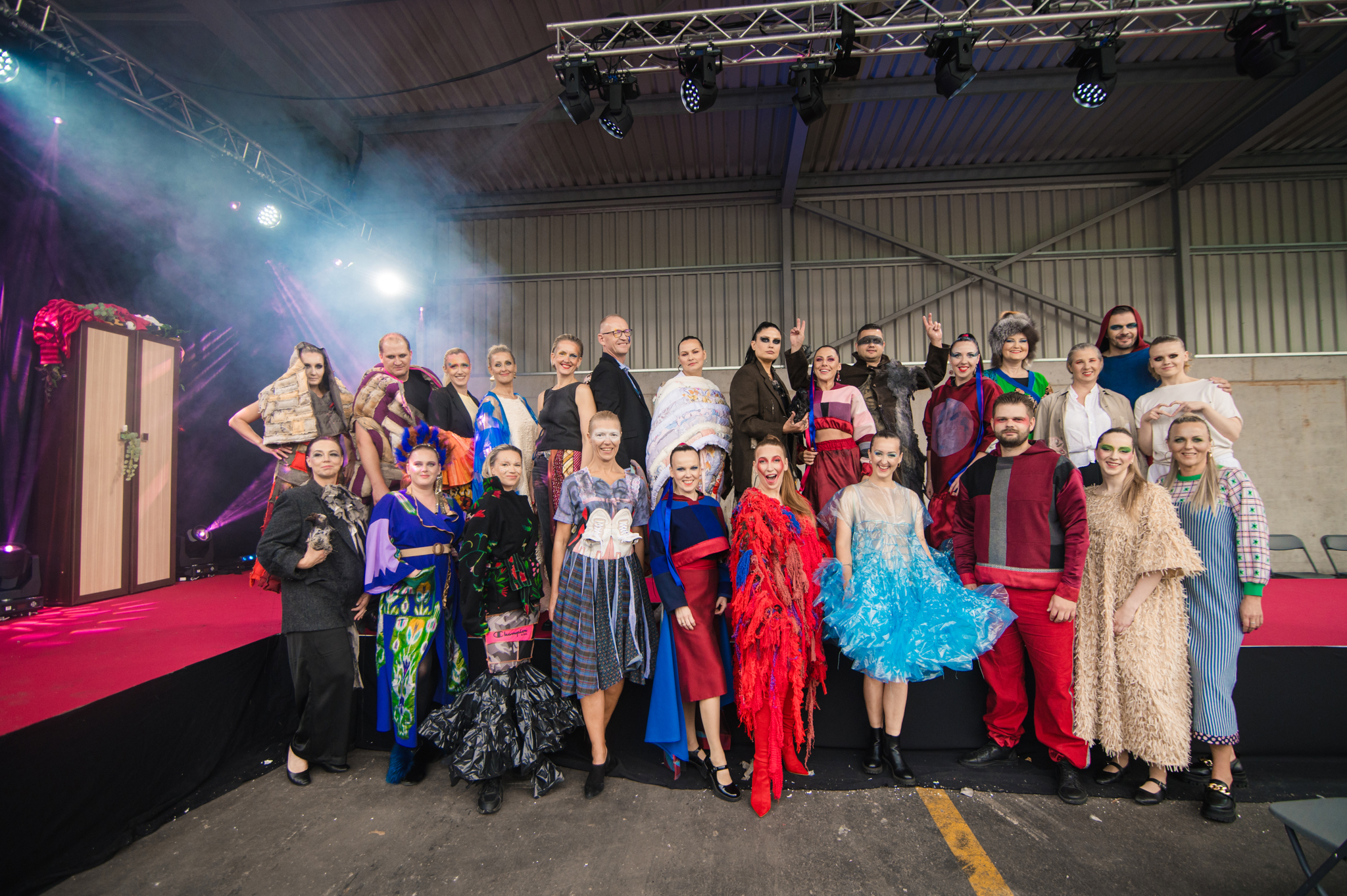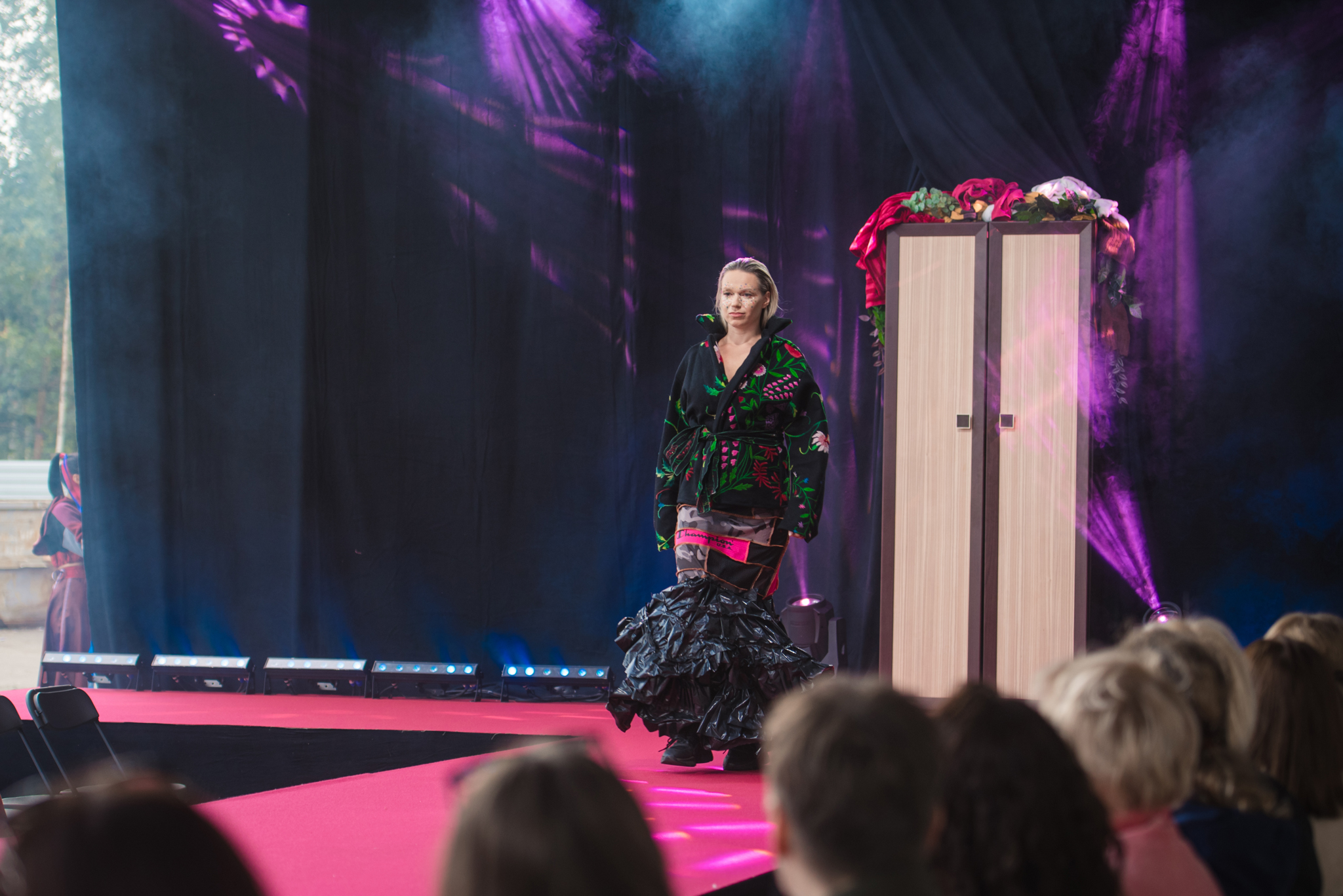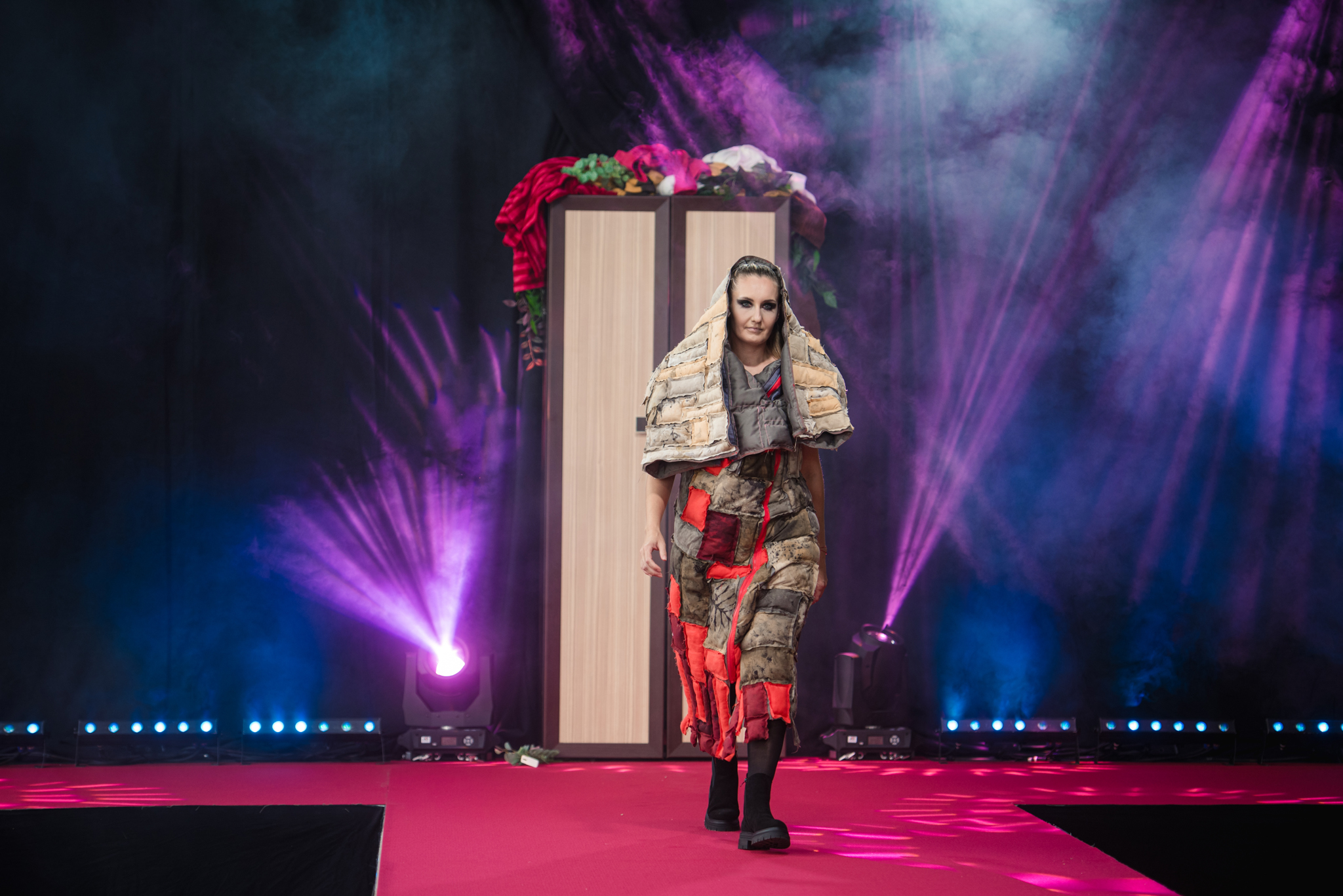 LMA studenti un tekstilmākslinieki modes skatē atrāda no lietota apģērba darinātus tērpus