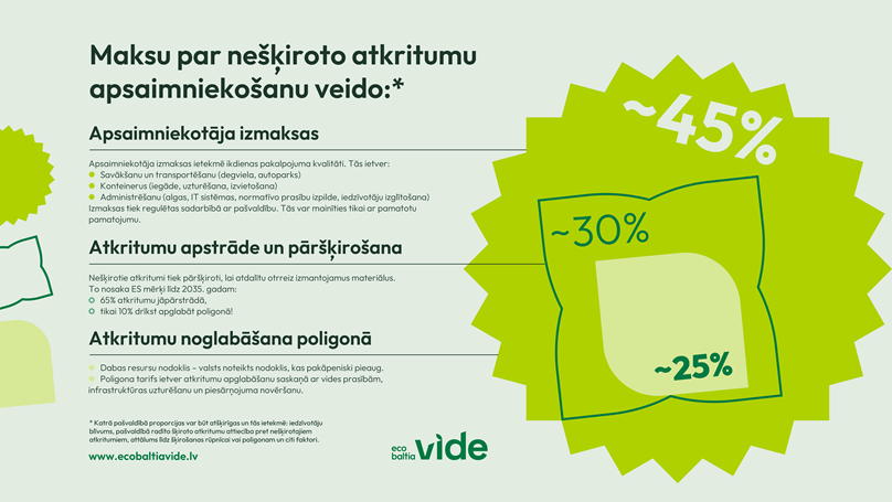 Vides apsaimniekošanas uzņēmums SIA “Eco Baltia vide” informē par plānotajām izmaiņām sadzīves atkritumu apsaimniekošanas pakalpojumu maksā, kas stāsies spēkā no 2026. gada 1. janvāra.
